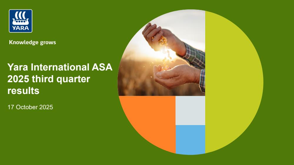 Yara International ASA provides environmental and industrial solutions in Norway, European Union, Europe, Africa, Asia, North and Latin America, Australia, and New Zealand. The company offers nitrogen-based fertilizers, including urea, urea ammonium nitrate, calcium ammonium nitrate, ammonium nitrate, and ammonium sulfate; compound fertilizers that contain plant nutrients, such as nitrogen, phosphorus, and potassium; and blended products, as well as foliar and fertigation solutions through micronutrients. It also offers farmer centric solutions; solutions for farming, such as crop monitoring, variable rate fertilization, N-Tester BT, and Driving Mode, a mobile app; N-Sensor, a tractor-mounted tool that allows growers to measure a crop's nitrogen requirement; CheckIT, a smartphone app using a library of crop photographs to give a simple and fast identification of nutrient deficiencies; TankmixIT, an app used to check for the physical compatibility when tank mixing; and Tankmix.com, an online service providing advice on the physical mixing characteristics of Yara's foliar products with agrochemicals. The company sells its products under YaraBela, YaraLiva, YaraMila, YaraRega, YaraTera, YaraVera, and YaraVita brands name. Yara International ASA was founded in 1905 and is headquartered in Oslo, Norway.